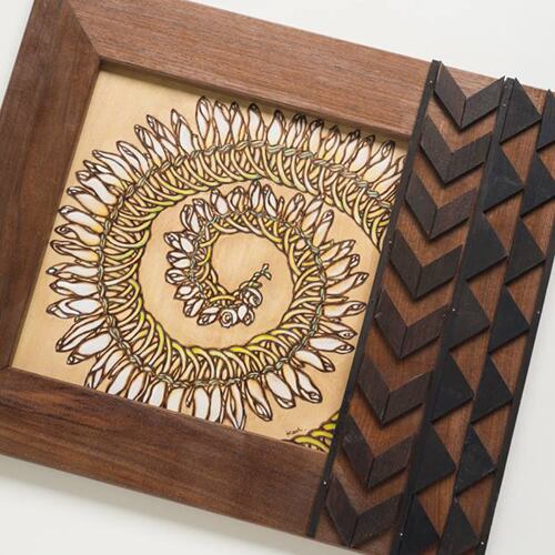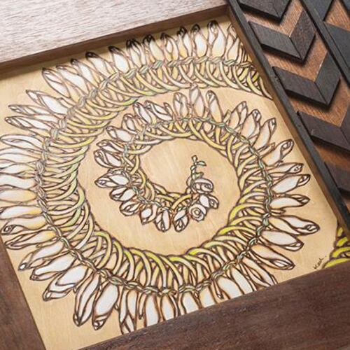 タパ柄のオリジナルフレームに、Hawaiian FlowerやPlantsのLeiを描きました。