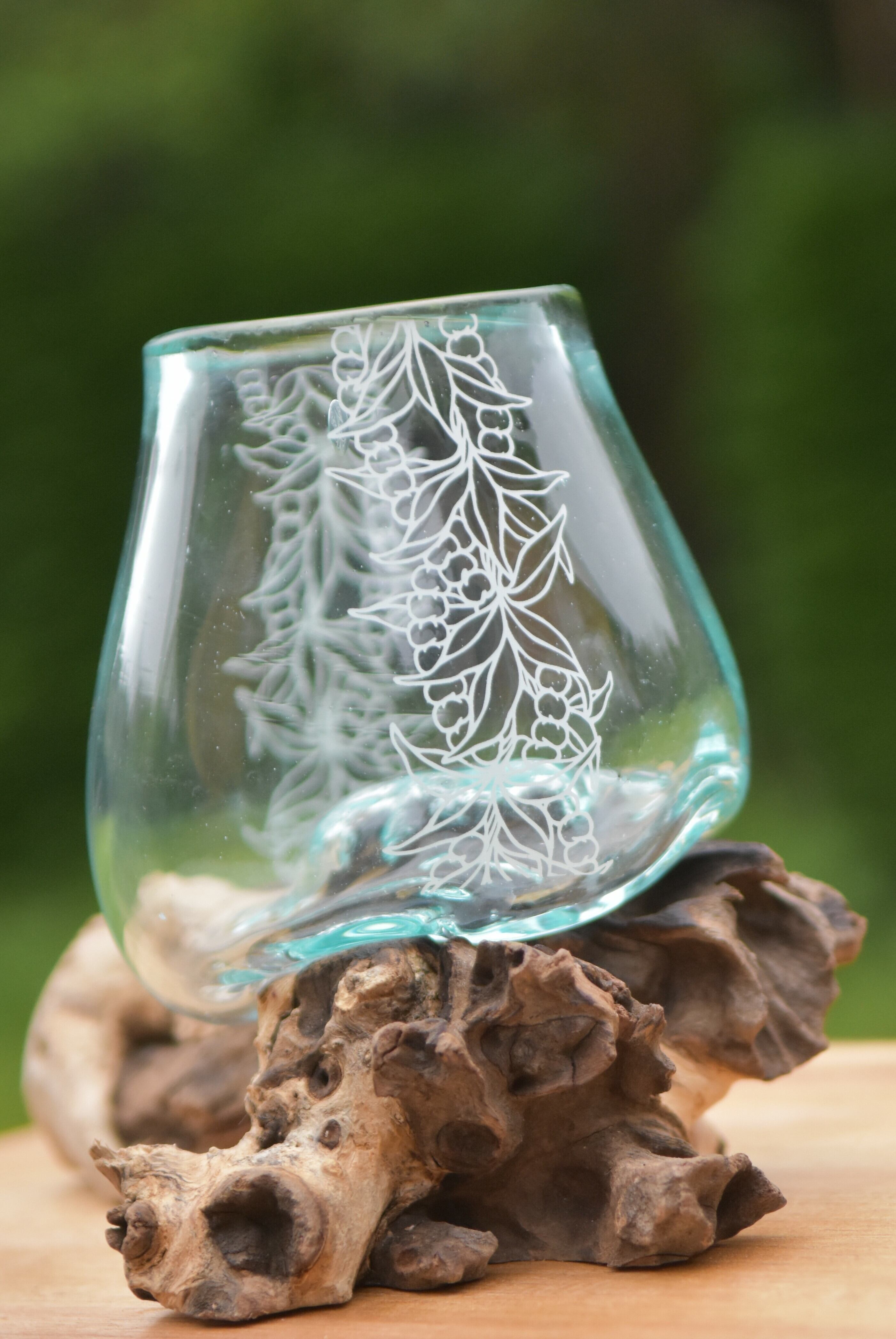 Hawaiianpaint KAN Glass Pot 【プルメリア / マイレ】 流木の形をそのまま生かしてグラスポットが作られている、とっても面白くておしゃれなデザインです♪♪ ☆天然の流木を利用して作られていますので、ひとつひとつ形状・風合い・色味・大きさなどが違います。予めご了承ください。