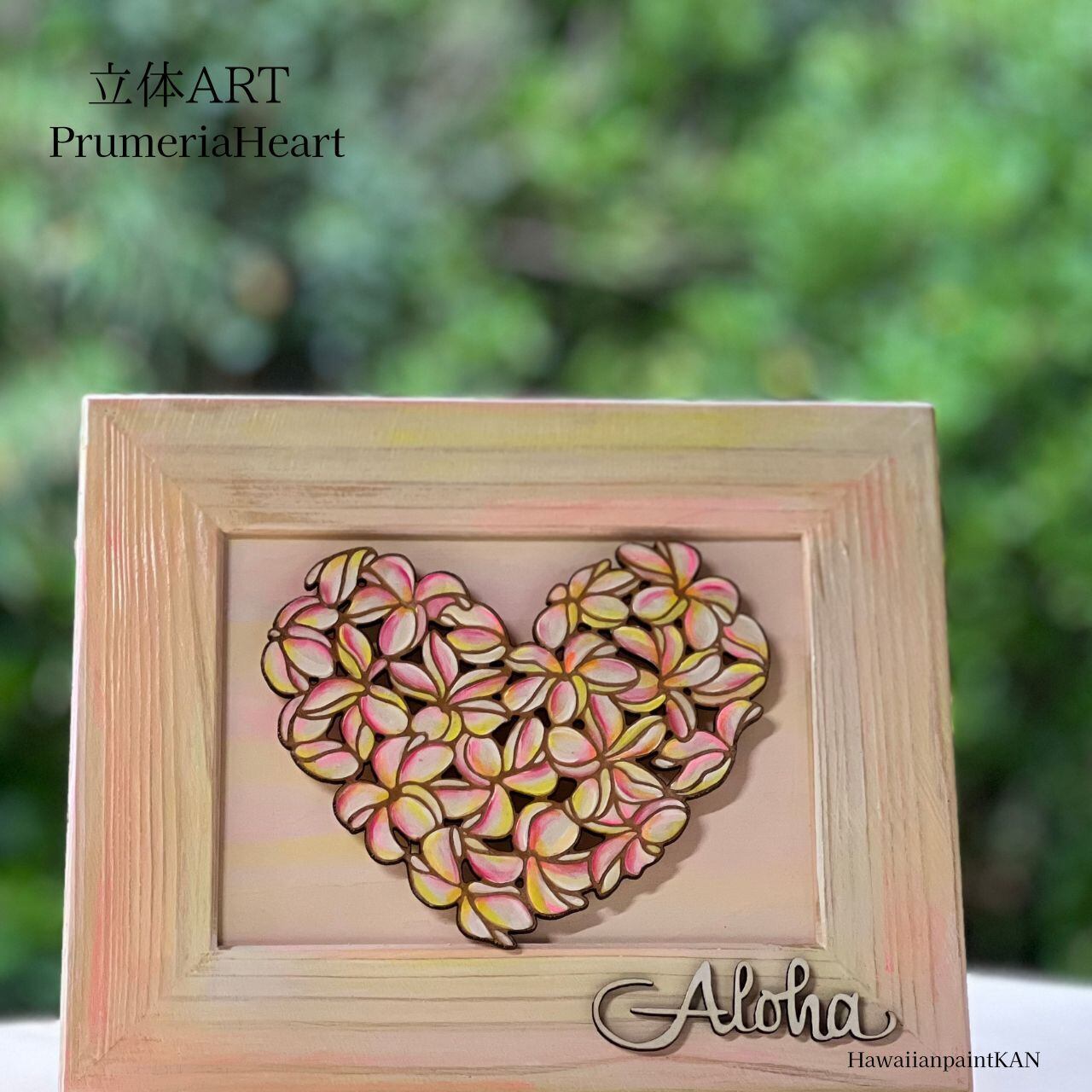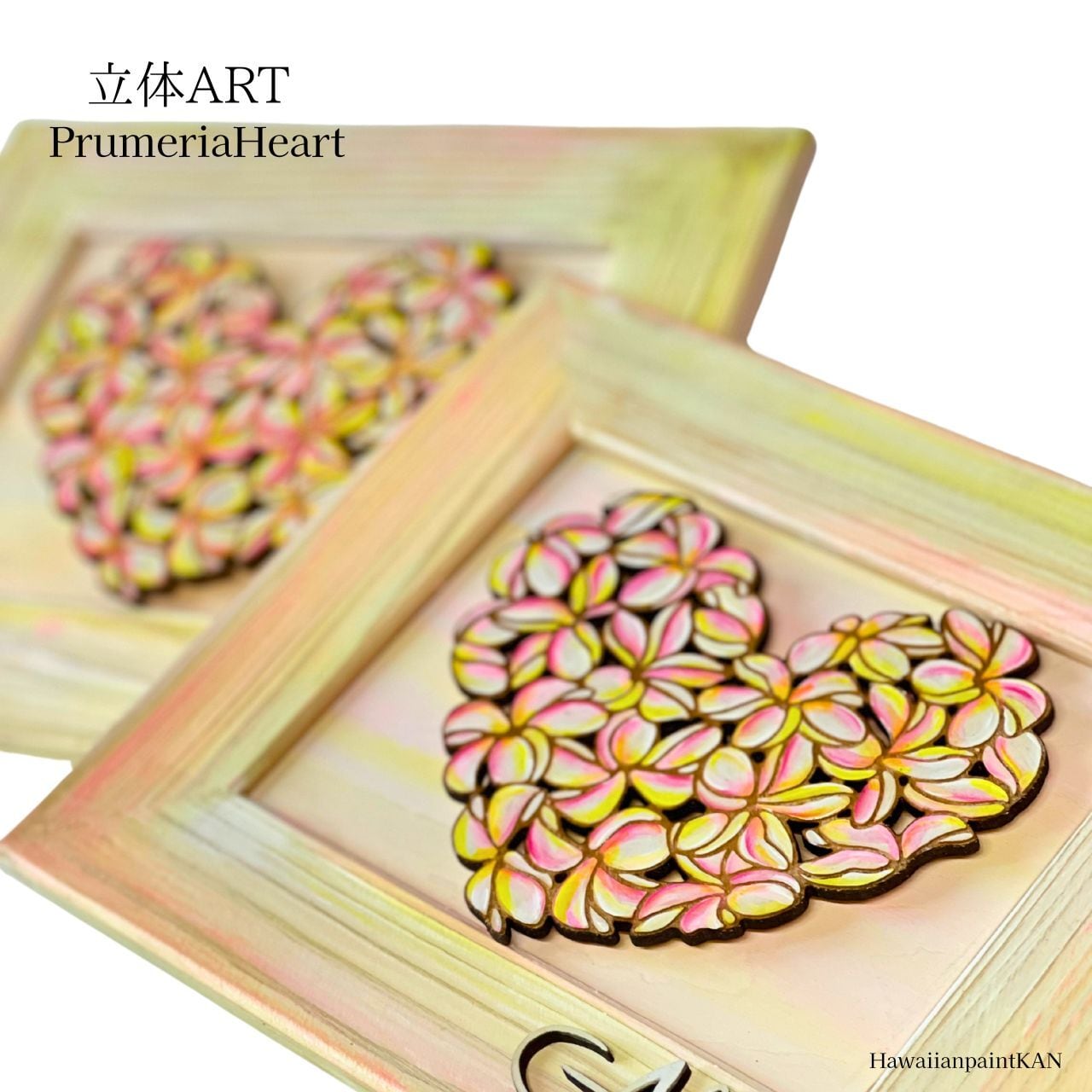 ハワイを感じさせるプルメリアのハート 立体的に浮き出ているデザインです オリジナルフレームは贈り物にも最適