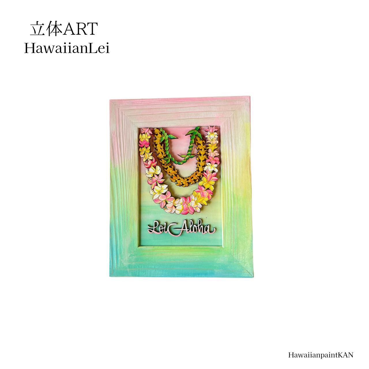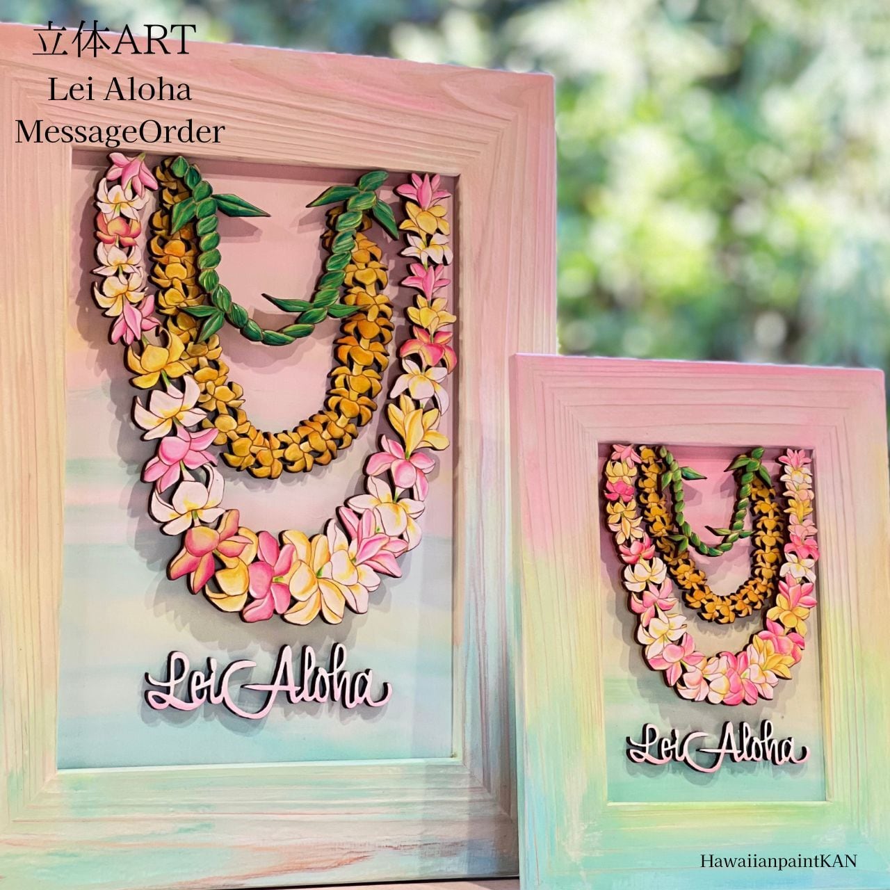 メッセージ・名入れ ハワイアンレイフレーム レイアロハデザイン 3連レイ 400X305